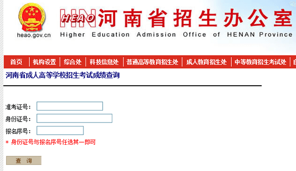 2017年河南成人高考成绩查询入口已于11月25日开通,考生可以登录河南教育考试院(http://www.heao.gov.cn/)或直接通过点击以下链接进入河南成考查分入口查看本次考试成绩。