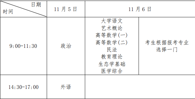 2.专升本考试时间表