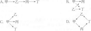 16.下述四种生物构成的生态系统中,哪种营养结构的生态系统最稳定( )