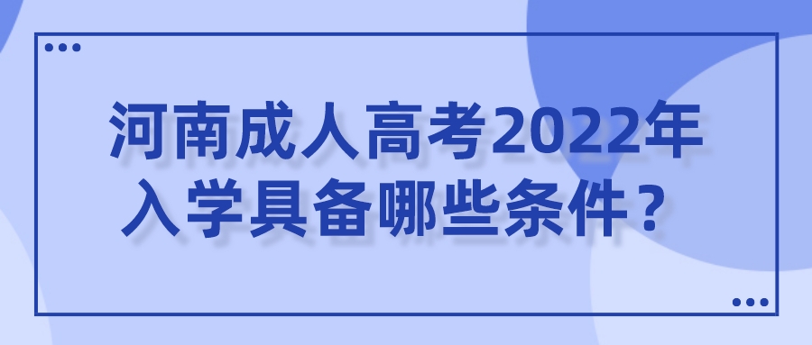 【导读】河南成人高考2022年入学具备哪些条件?很多同学对于这个问题不太清楚,那么河南成考网带大家一起了解一下,具体内容如下: