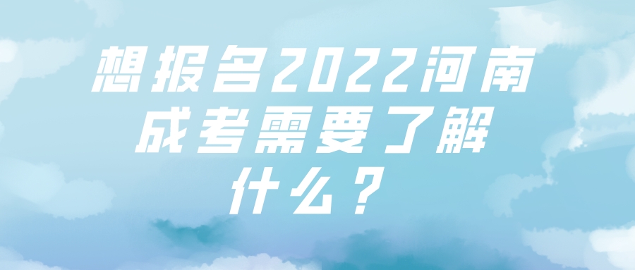 【 导读】 想报名2022河南成考需要了解什么?2022年成人高考将于10月15日-16日举行,各省市2022年成人高考报考公告陆续公布。很多同学对于这个问题不太清楚,那么河南成考网带大家一起了解一下,具体内容如下: